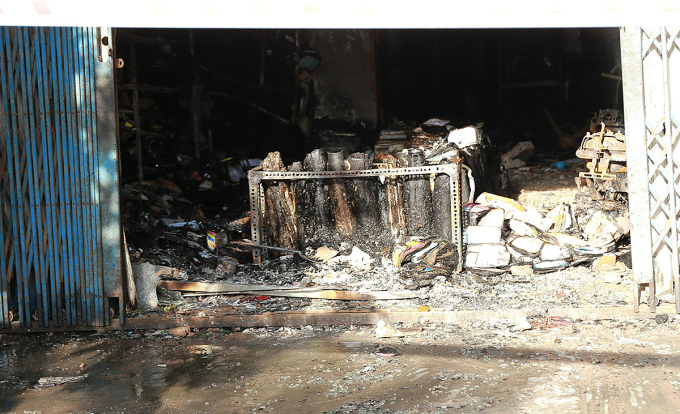 Hàng hóa ở tầng một ngôi nhà bị thiêu rụi. Ảnh: Đắc Thành