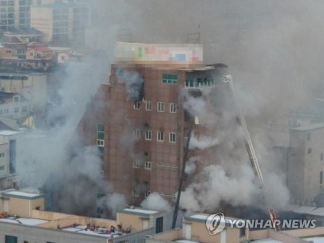 Theo các nhà chức trách, ngọn lửa bùng phát từ một phương tiện trong hầm để xe của tòa nhà cao tám tầng. Cách thủ đô Seoul khoảng 168 km về phía đông nam, tòa nhà này gồm có một trung tâm thể hình, một phòng xông hơi công cộng và nhiều nhà hàng.