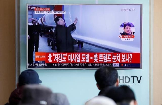 Hành khách tại nhà ga Seoul, Hàn Quốc theo dõi thông tin về vụ CHDCND Triều Tiên phóng tên lửa đạn đạo ngày 12-2. (Ảnh: Reuters)