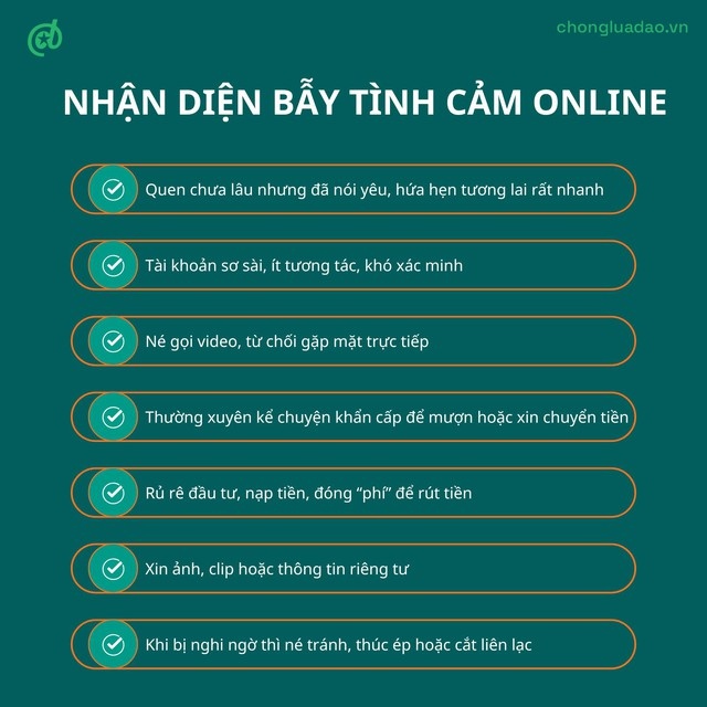 Checklist nhận diện các dấu hiệu của bẫy lừa đảo tình cảm