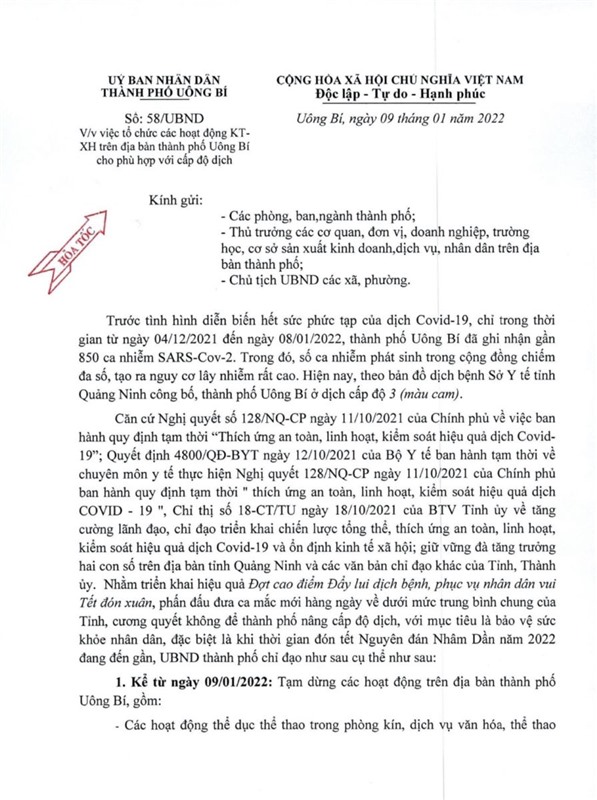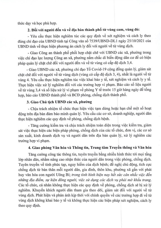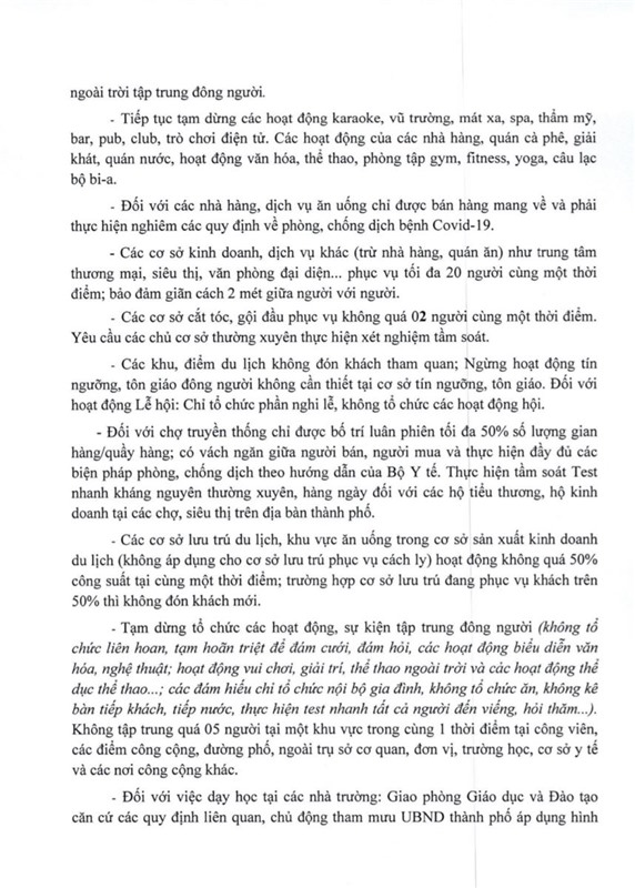 Chỉ đạo của UBND thành phố về việc tổ chức các hoạt động KT-XH trên địa bàn TP cho phù hợp với cấp độ dịch