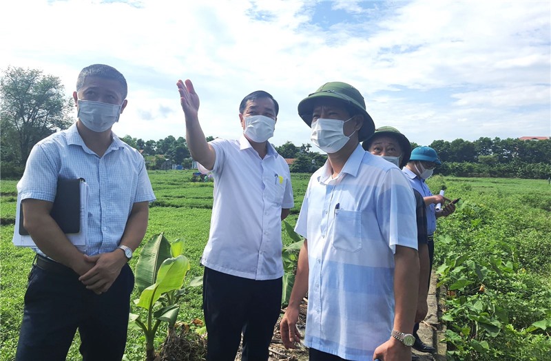 Đồng chí Chủ tịch UBND TP Phạm Tuấn Đạt kiểm tra thực địa công trình xây dựng hạ tầng khu 9, phường Quang Trung.
