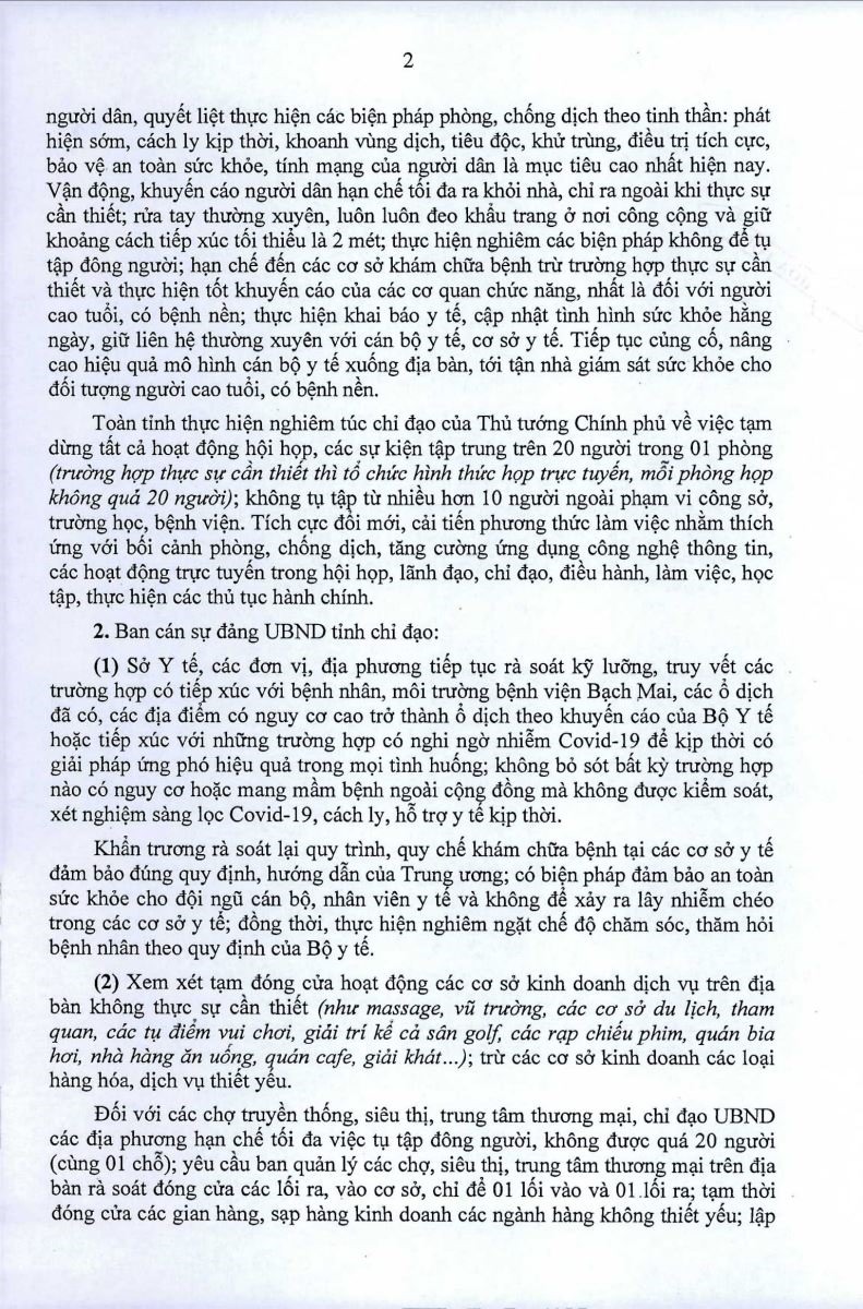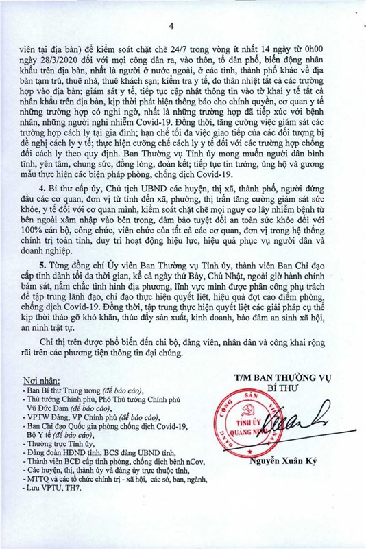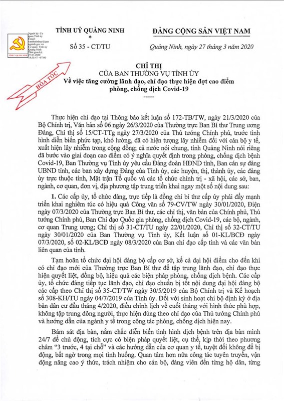 Chỉ thị số 35-CT/TU ngày 27/3/2020 của Ban Thường vụ Tỉnh ủy về việc tăng cường lãnh đạo, chỉ đạo thực hiện đợt cao điểm phòng, chống dịch Covid-19