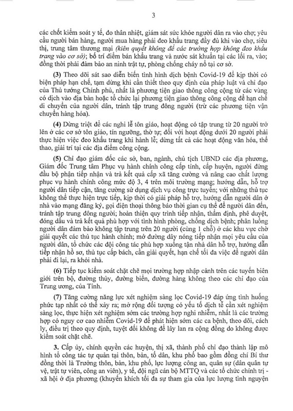 Chỉ thị của Ban Thường vụ Tỉnh ủy về việc tăng cường lãnh đạo, chỉ đạo thực hiện đợt cao điểm phòng, chống dịch Covid-19