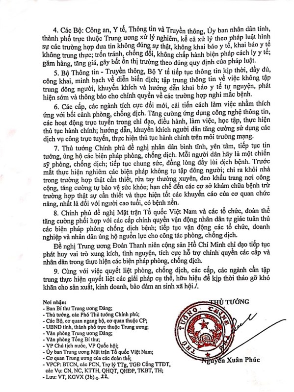 Chỉ thị về quyết liệt thực hiện đợt cao điểm phòng, chống dịch COVID-19
