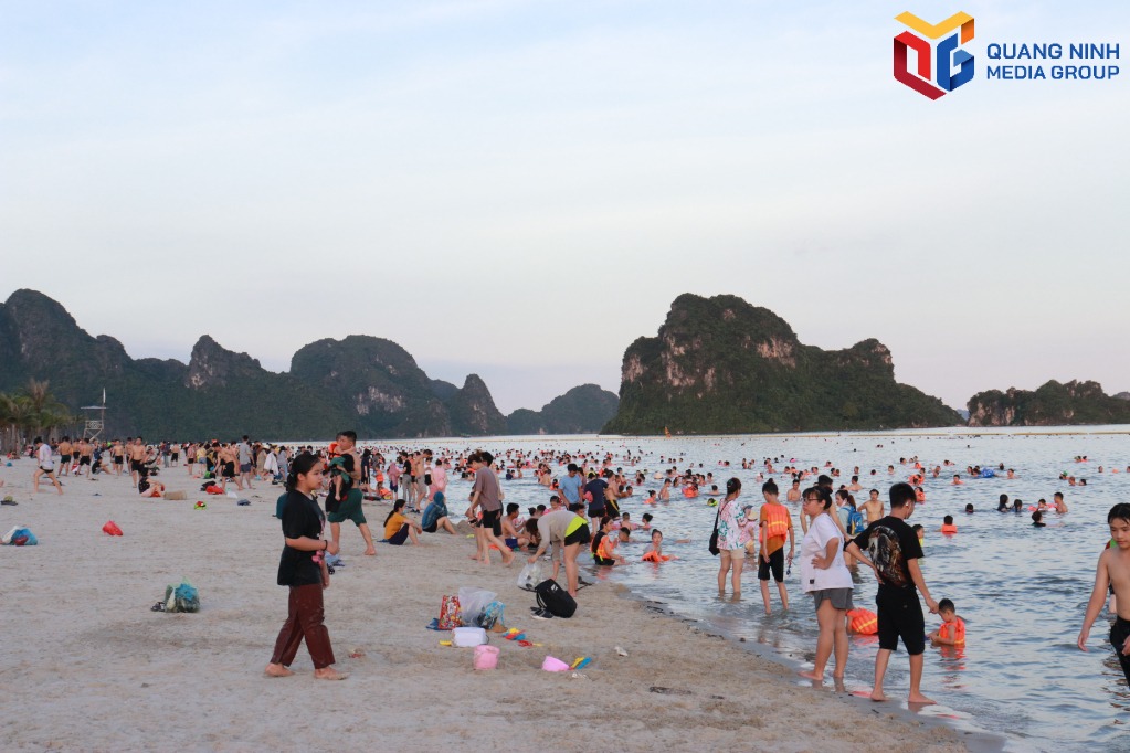 Du khách tắm biển tại Bãi tắm Hòn Gai (TP Hạ Long).