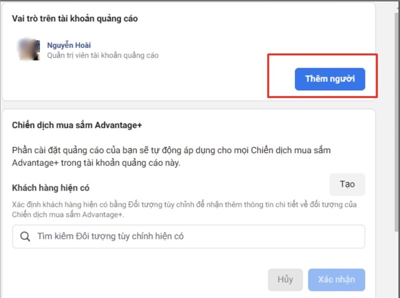Kẻ gian sẽ sử dụng tính năng thêm người cùng quản trị số tiền trong tài khoản quảng cáo của chị Hoài để dễ dàng sử dụng về sau. Ảnh: Nhân vật cung cấp.
