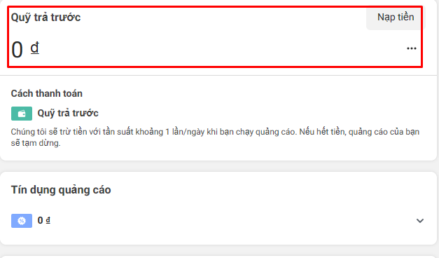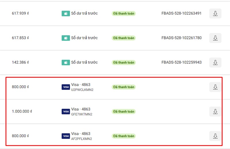Tiếp tục, kẻ gian thực hiện giao dịch nạp tiền trái phép từ thẻ tín dụng đã liên kết sẵn với tài khoản quảng cáo Facebook của nạn nhân.