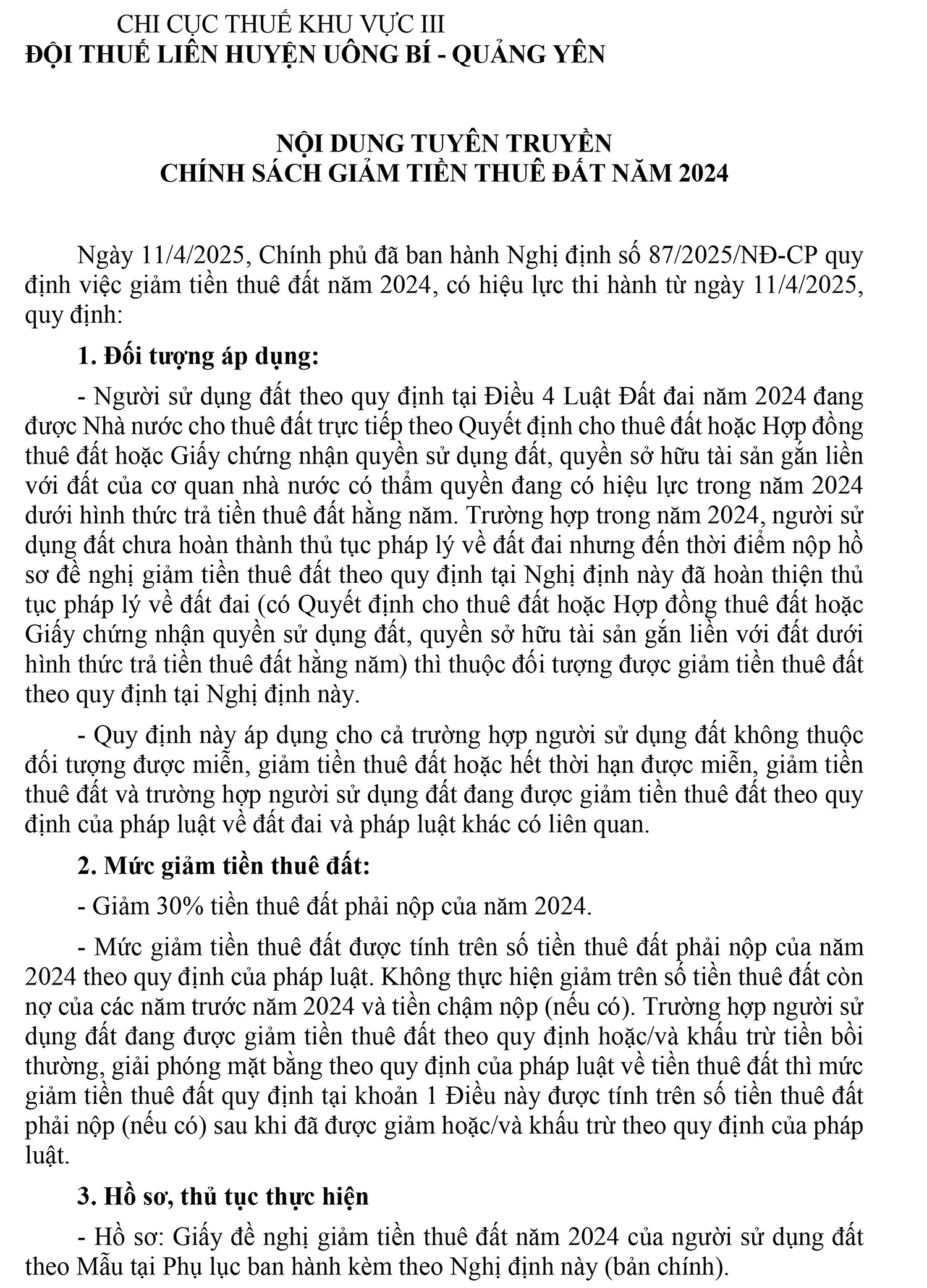 Chính sách giảm tiền thuê đất năm 2024 trên địa bàn TP Uông Bí
