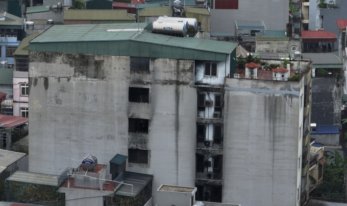Chung cư mini trong ngõ 29/70 phố Khương Hạ, phường Khương Đình tại Hà Nội xảy ra vụ cháy làm nhiều người chết hồi tháng 9. Ảnh: Ngọc Thành