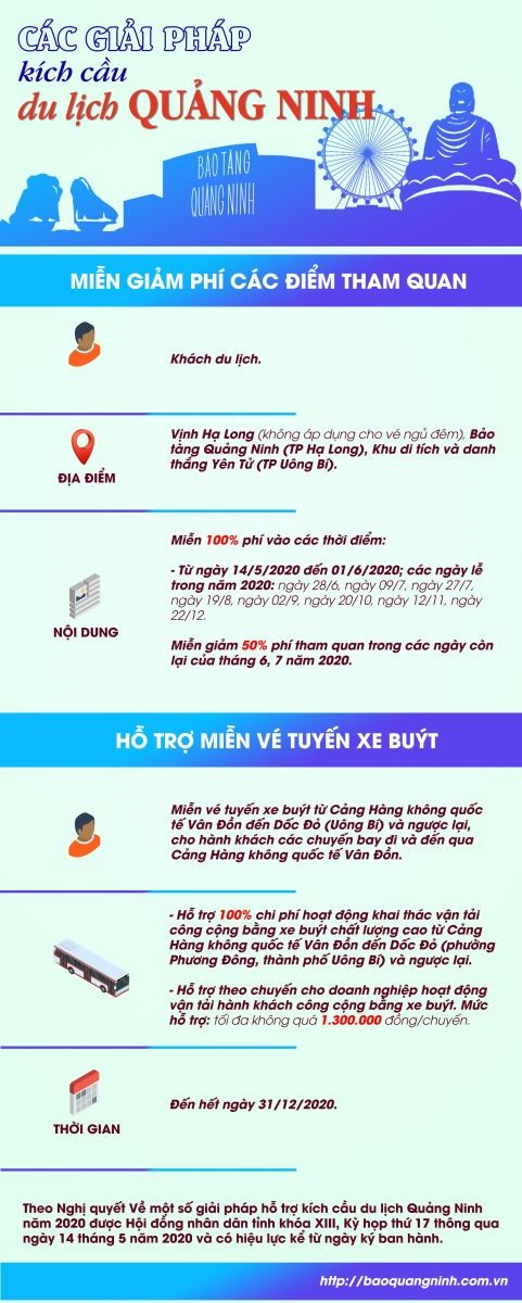 Ngày 14/5, tại Trung tâm Tổ chức hội nghị tỉnh (TP Hạ Long), HĐND tỉnh khóa XIII, nhiệm kỳ 2016-2021 tổ chức Kỳ họp thứ 17 – kỳ họp chuyên đề để quyết nghị một số nội dung quan trọng thuộc thẩm quyền của HĐND tỉnh. Tại kỳ họp, HĐND tỉnh đã thông qua một số giải pháp hỗ trợ kích cầu du lịch tỉnh Quảng Ninh năm 2020. Trong đó, có chính sách miễn, giảm phí vào các điểm tham quan: Vịnh Hạ Long, Bảo tàng Quảng Ninh (thành phố Hạ Long), Khu di tích và danh thắng Yên Tử (thành phố Uông Bí) cho khách du lịch.