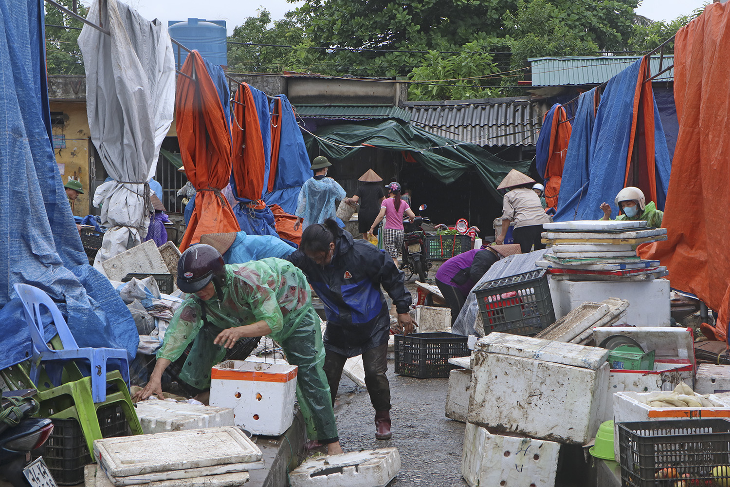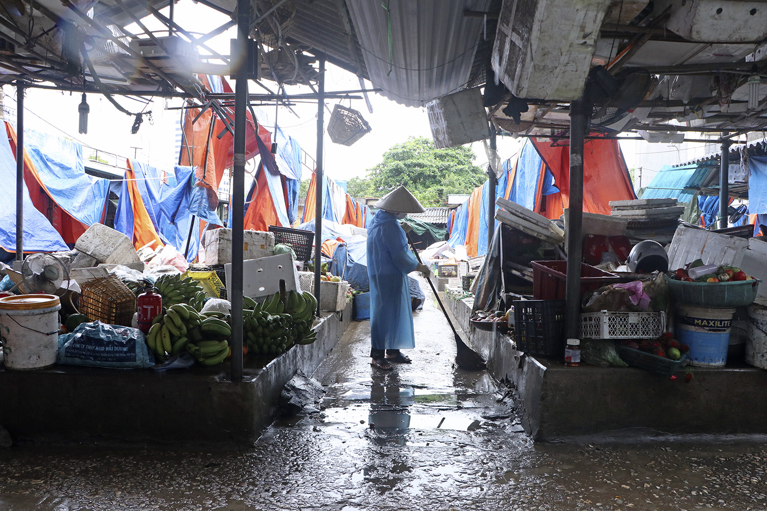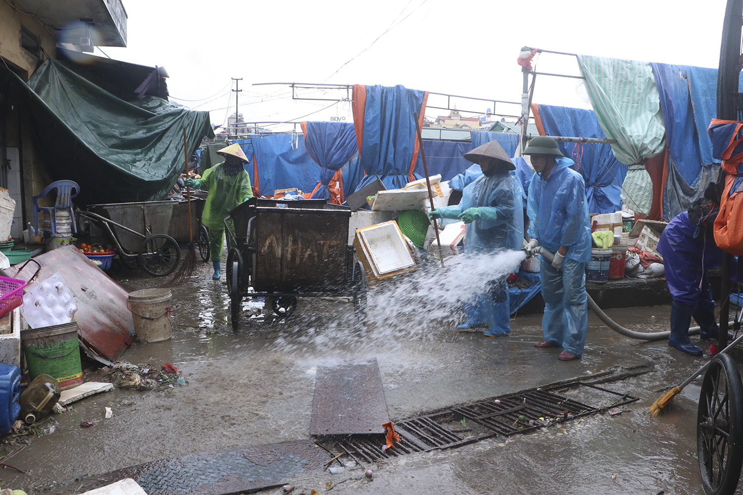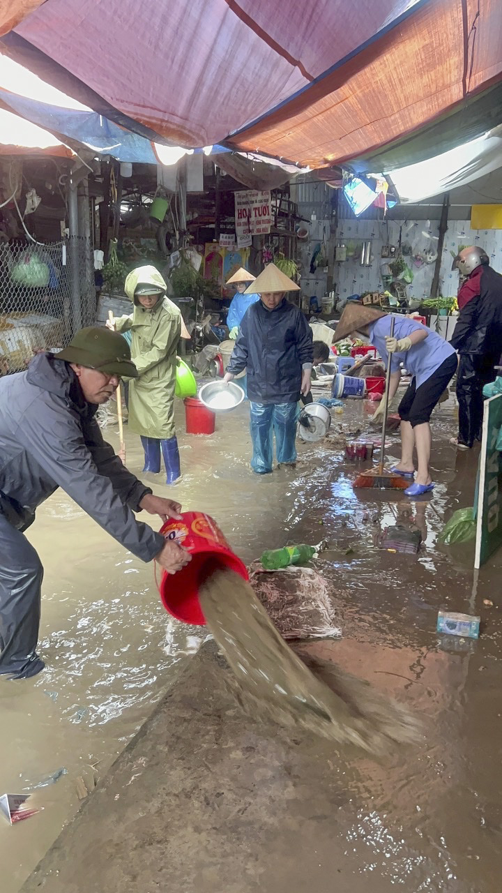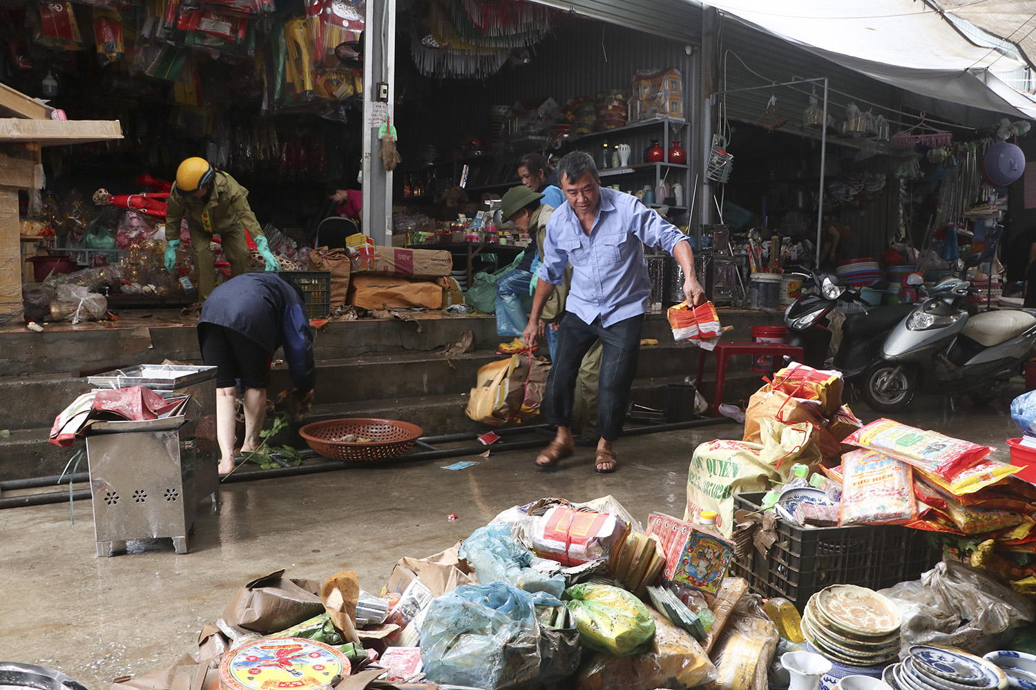 Ngay từ chiều ngày 9/6, sau khi nước rút, Ban quản lý chợ Trung tâm đã khẩn trương tổ chức huy động tối đa cán bộ, nhân viên tiến hành dọn dẹp, phân loại hàng hoá, quản lý tài sản cho các tiểu thương tại khu vực chợ lưu động và tổng vệ sinh, phun nước rửa và khử khuẩn toàn bộ khu vực bị ngập úng, kiểm tra đảm bảo an toàn điện.