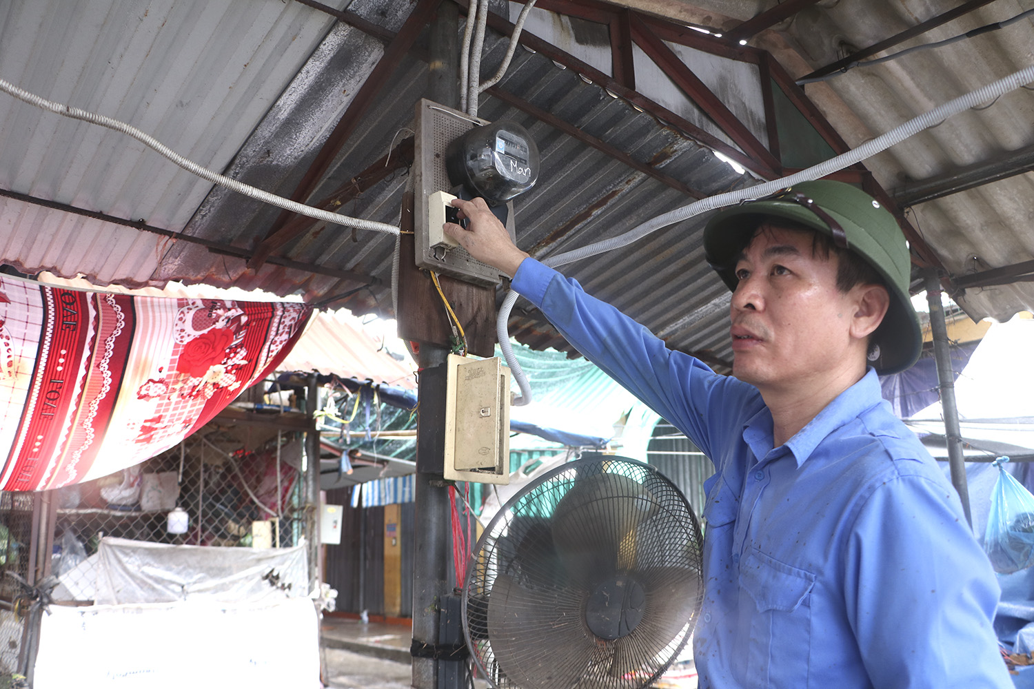 Cán bộ chợ Trung tâm kiểm tra hệ thống điện.