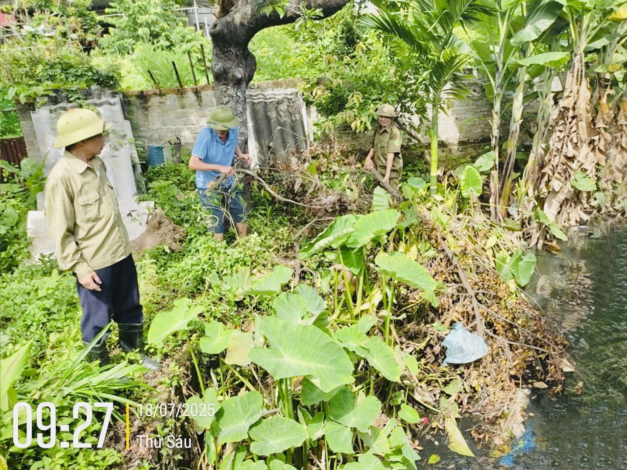 Các khu dân cư cũng chủ động huy động lực lượng đoàn viên, hội viên các đoàn thể và Nhân dân phát quang cành cây, bụi rậm, khơi thông dòng chảy mương thoát nước.