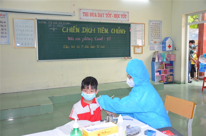 Tiêm vắc-xin phòng Covid-19 cho nhóm học sinh lớp 5, lớp 6 trên địa bàn phường Yên Thanh (TP Uông Bí).