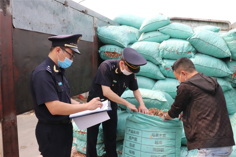 Lực lượng Hải quan Cửa khẩu Hoành Mô (huyện Bình Liêu) kiểm soát hàng hóa xuất nhập khẩu.