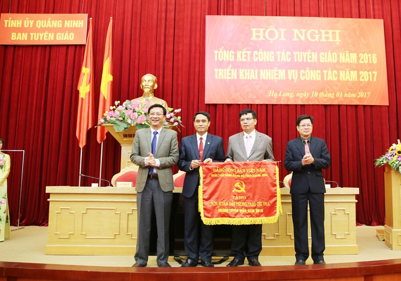 Đồng chí Bí thư Tỉnh ủy trao cờ đơn vị dẫn đầu thi đua công tác tuyên giáo năm 2016 cho Ban Tuyên giáo Thành ủy Cẩm Phả.