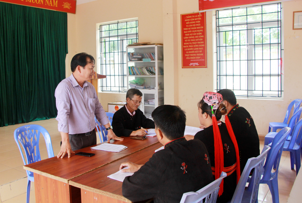 Lãnh đạo xã Bằng Cả (TP Hạ Long) dự họp với Chi ủy Chi bộ thôn 1. Ảnh: Thu Chung