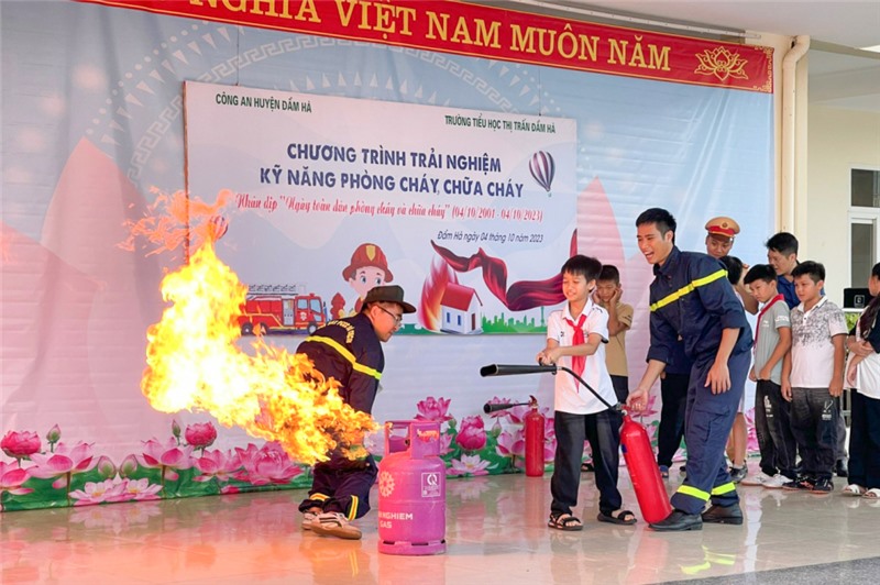 Để đổi mới hình thức tuyên truyền, Công an huyện phối hợp với Trường Tiểu học thị trấn Đầm Hà tổ chức 1 chương trình ngoại khóa về trải nghiệm kỹ năng PCCC, với sự tham gia của gần 1.000 học sinh, cán bộ, giáo viên, nhân viên. Các hoạt động diễn tập chữa cháy, cứu hộ, cứu nạn được triển khai hiệu quả, huy động sự tham gia của lực lượng làm công tác PCCC ở cơ sở. Nhìn chung, các thông điệp về PCCC được nhân dân rất quan tâm, hưởng ứng; các cơ quan, đơn vị, cửa hàng, doanh nghiệp, đặc biệt là chợ Trung tâm huyện... đã tự giác chấp hành tốt các quy định an toàn do Công an huyện hướng dẫn, trang bị đầy đủ các thiết bị PCCC.