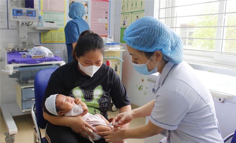 Tiêm vắc-xin cho trẻ tại Bệnh viện Sản Nhi Quảng Ninh. Ảnh: Cao Quỳnh