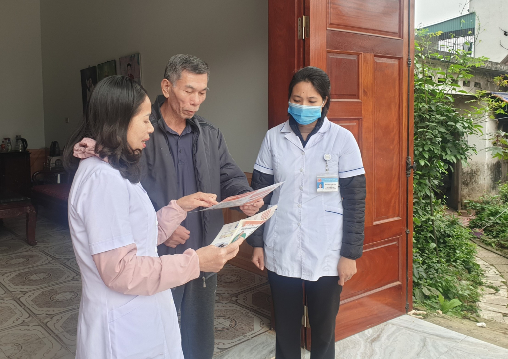 Cán bộ y tế xã Đồn Đạc, huyện Ba Chẽ tuyên truyền cho người dân về phòng, chống bệnh dại.