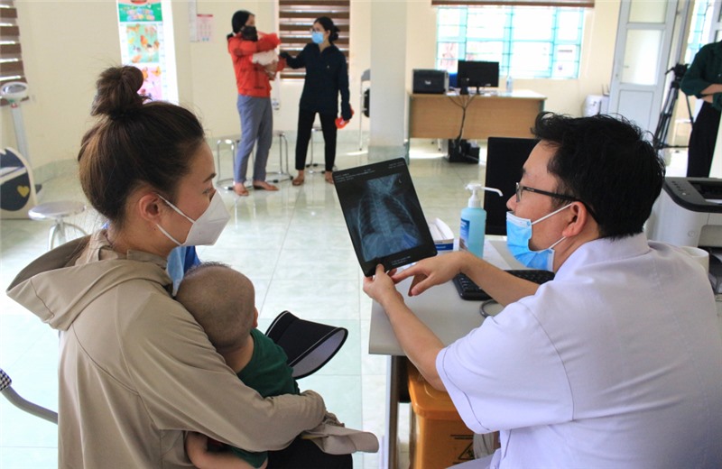 Bác sĩ Bệnh viện Sản Nhi Quảng Ninh khám bệnh cho trẻ nhỏ. Ảnh: Nguyễn Trang