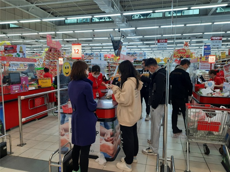 Người dân mua sắm tại Siêu thị GO! Hạ Long thực hiện đeo khẩu trang đầy đủ.