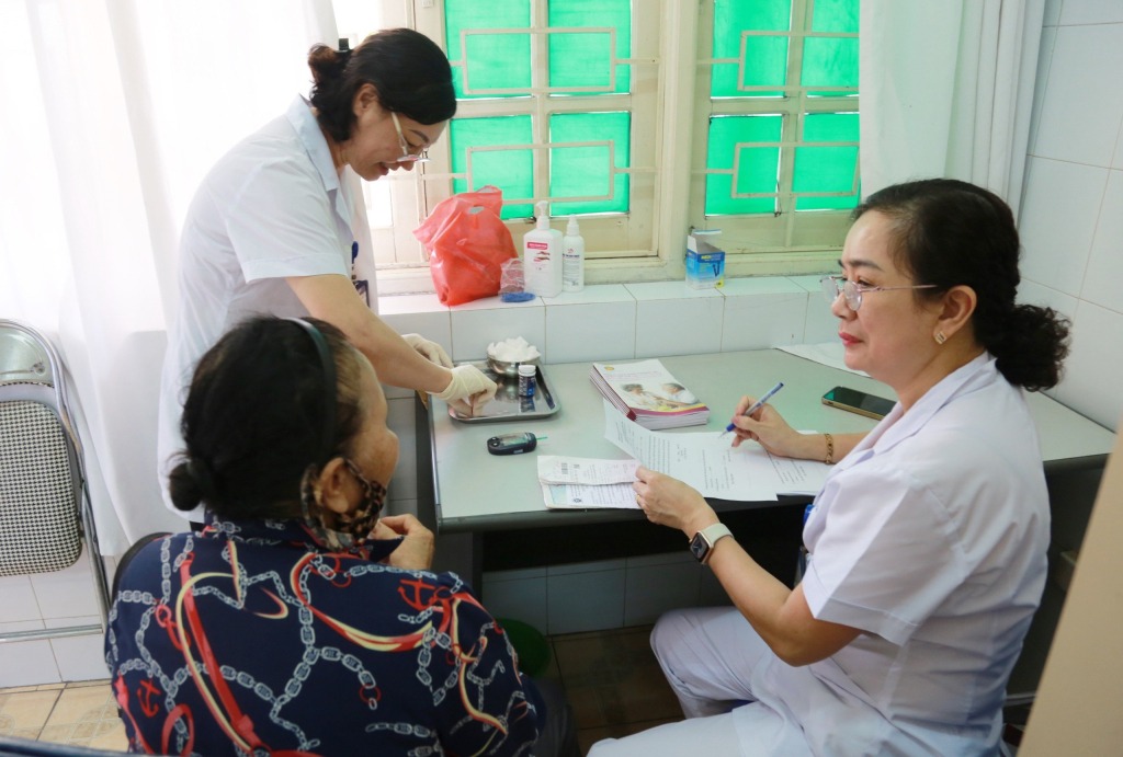 Bác sĩ Bệnh viện Đa khoa tỉnh khám bệnh cho người già. (Ảnh: Bệnh viện Đa khoa tỉnh cung cấp)