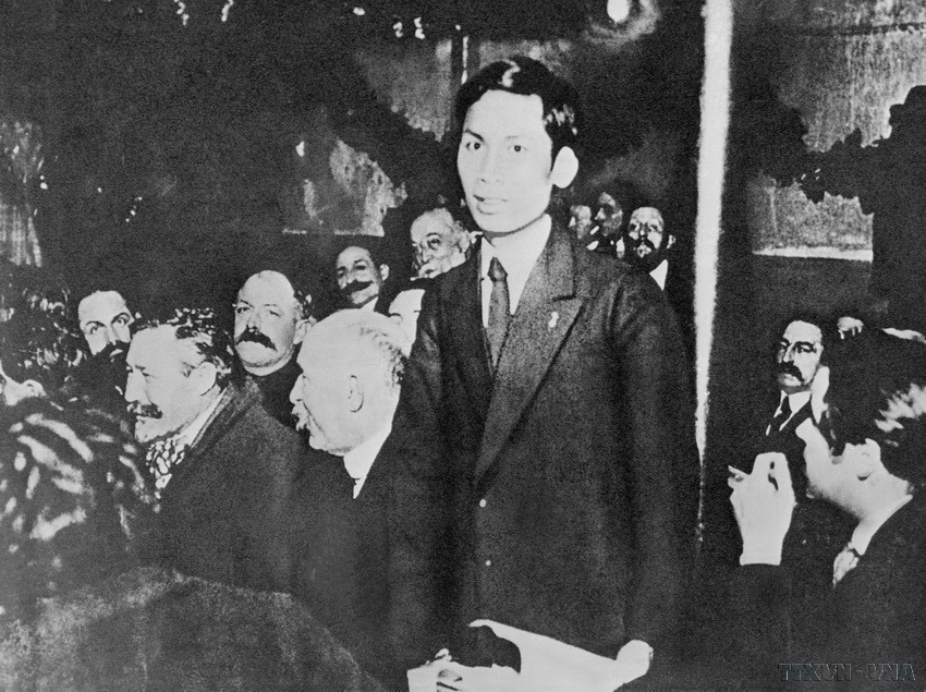 Đồng chí Nguyễn Ái Quốc (Chủ tịch Hồ Chí Minh) phát biểu tại Đại hội thành lập Đảng Cộng sản Pháp họp ở thành phố Tua. Đồng chí là người Việt Nam đầu tiên trở thành người cộng sản và là một trong những sang lập viên của Đảng Cộng sản Pháp (12/1920). (Ảnh: TTXVN)