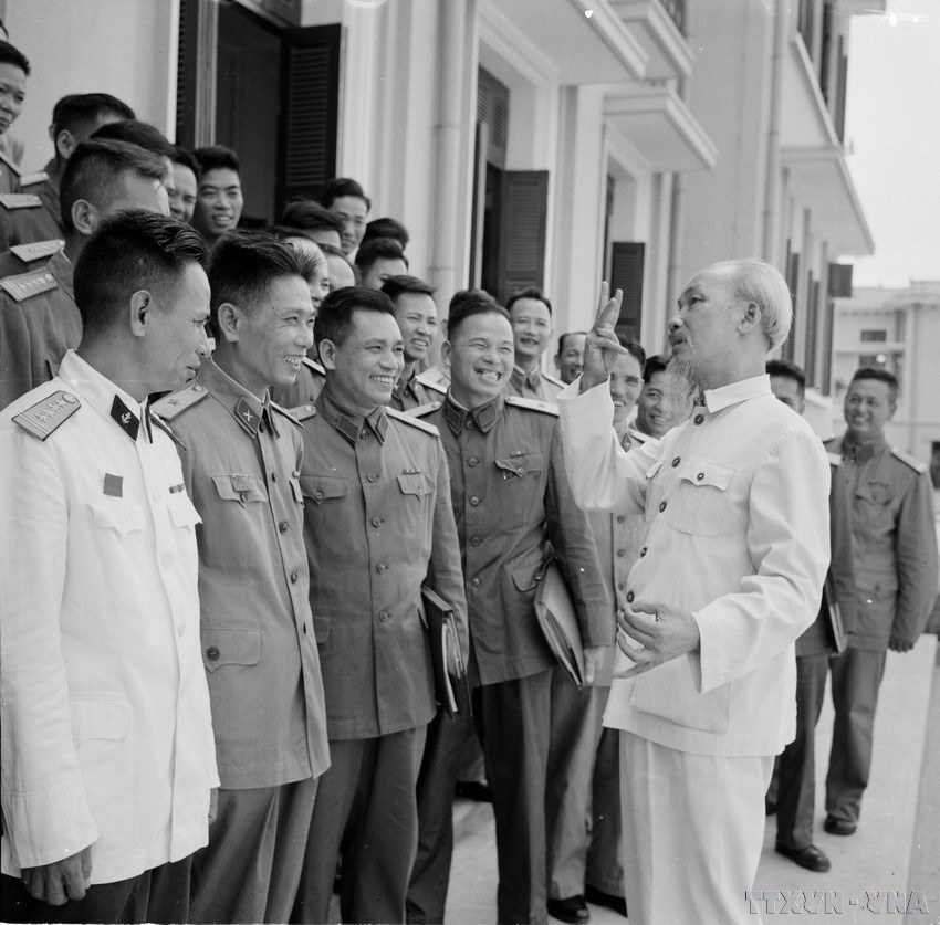 Chủ tịch Hồ Chí Minh nói chuyện với các đại biểu quân đội về dự Đại hội Đại biểu toàn quốc lần thứ III của Đảng (9/1960). (Ảnh: TTXVN)