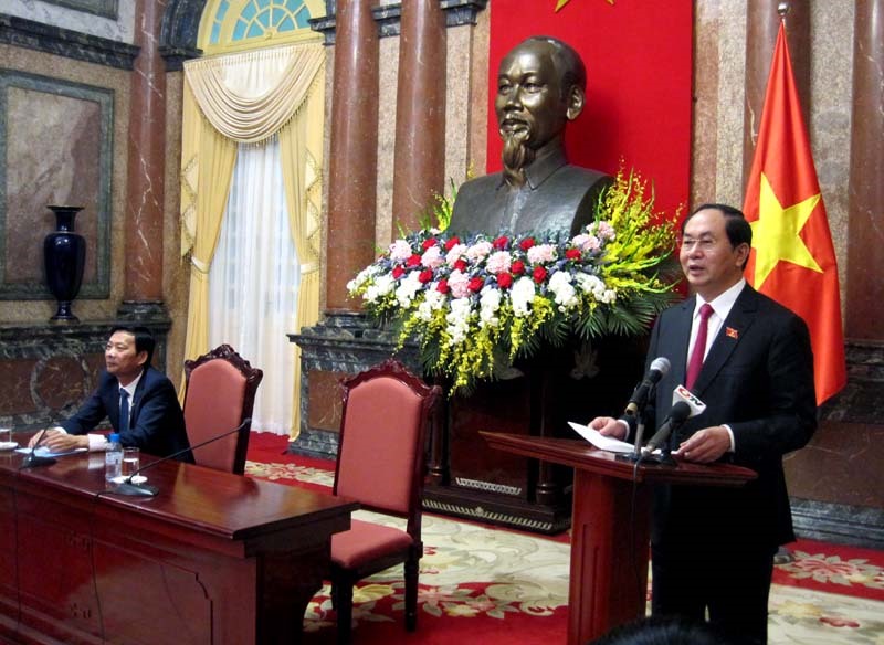 Chủ tịch nước Trần Đại Quang phát biểu chúc mừng Đoàn Đại biểu tỉnh Quảng Ninh và 2 đơn vị.