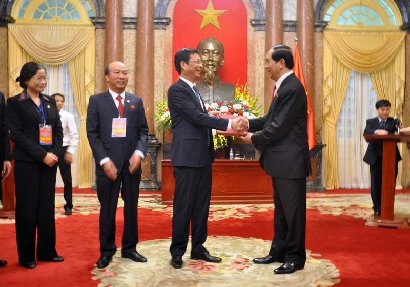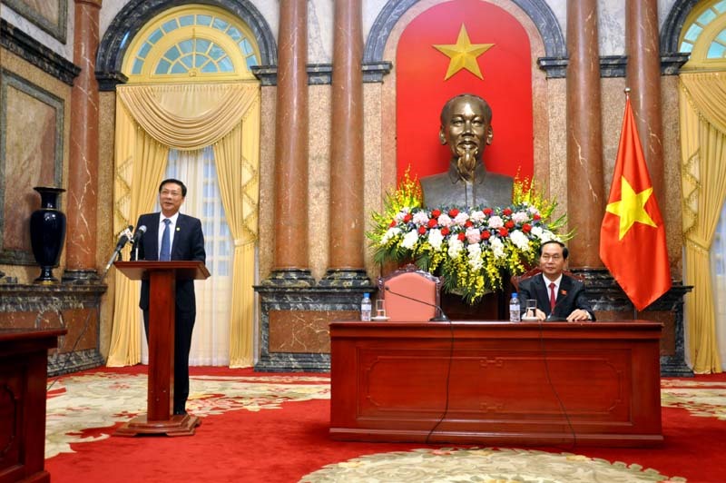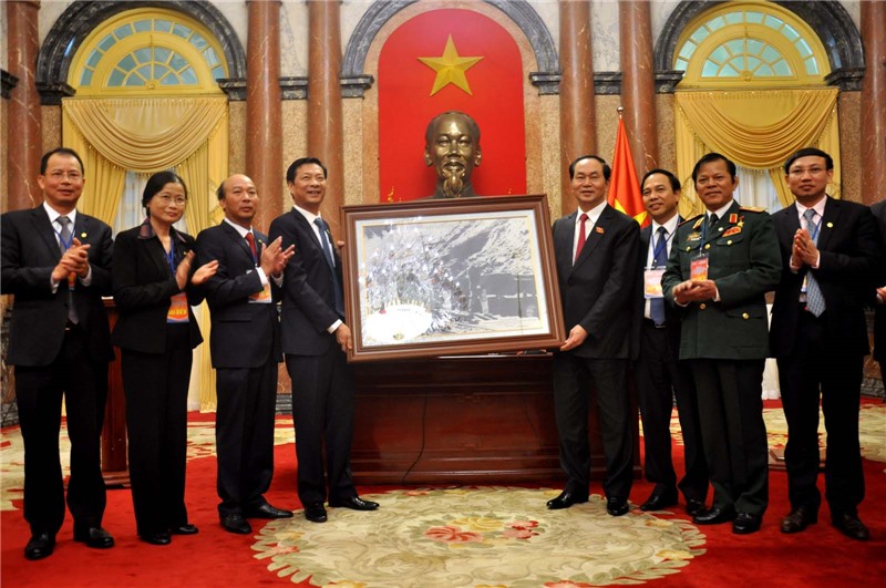 Chủ tịch nước Trần Đại Quang tặng quà cho các thành viên Đoàn Đại biểu tỉnh Quảng Ninh và 2 đơn vị ngành Than.