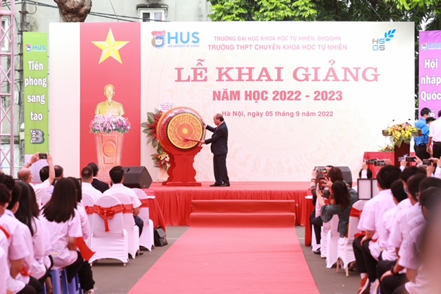 Ngày 5/9, Trường THPT chuyên Khoa học tự nhiên, thuộc Trường ĐH Khoa học Tự nhiên, Đại học Quốc gia Hà Nội (ĐHQGHN) tổ chức khai giảng năm học 2022-2023. Chủ tịch nước Nguyễn Xuân Phúc tới dự.