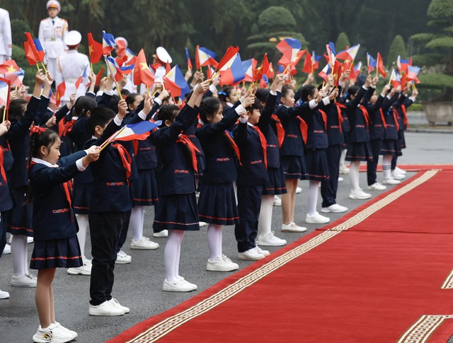 Thiếu nhi Thủ đô chào đón Tổng thống Philippines Ferdinand Romualdez Marcos Jr và Phu nhân thăm cấp Nhà nước tới Việt Nam - Ảnh: VGP/Nhật Bắc