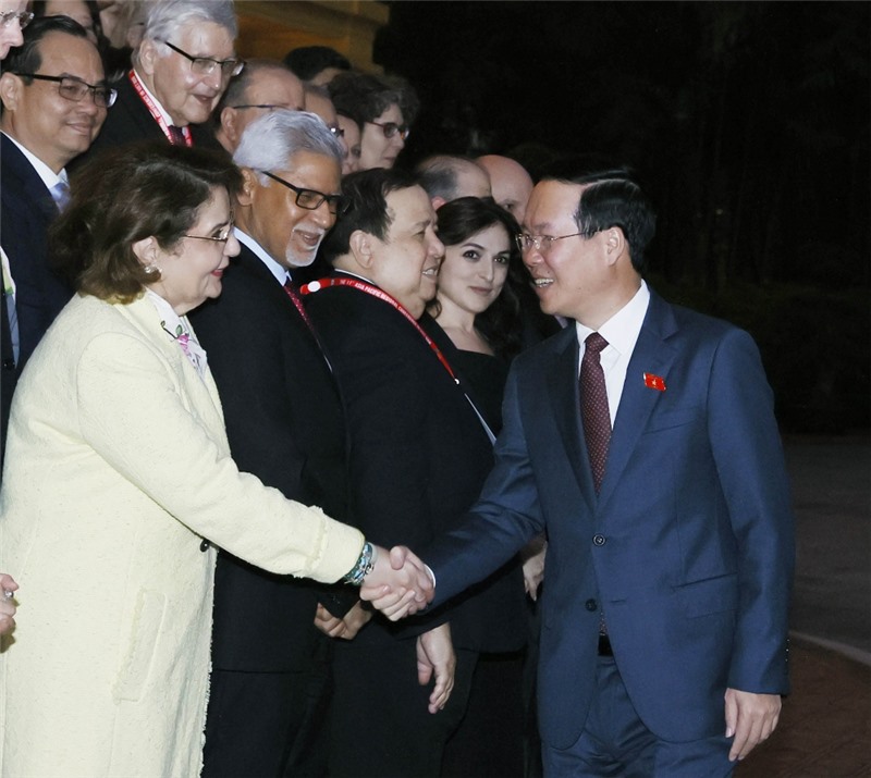 Chủ tịch nước Võ Văn Thưởng đánh giá cao, ghi nhận và cảm ơn sự ủng hộ to lớn của Hiệp hội Chữ thập đỏ - Trăng lưỡi liềm đỏ quốc tế, Ủy ban quốc tế Chữ thập đỏ, Hội Chữ thập đỏ và Trăng lưỡi liềm đỏ của các quốc gia, các tổ chức quốc tế đã hợp tác và hỗ trợ hiệu quả cho Việt Nam.