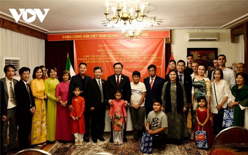 Chủ tịch Quốc hội Vương Đình Huệ chụp ảnh chung cùng cộng đồng người Việt tại Iran.