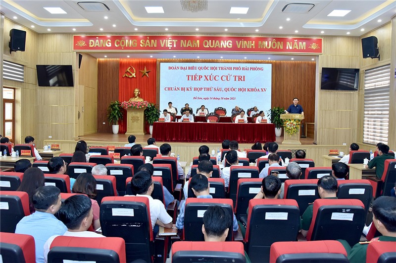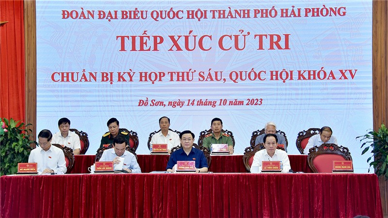 Sáng nay, 14/10, trước thềm Kỳ họp thứ Sáu, Quốc hội Khoá XV, Chủ tịch Quốc hội Vương Đình Huệ và Đoàn đại biểu Quốc hội TP Hải Phòng đã tiếp xúc cử tri quận Đồ Sơn.