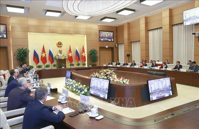 Tại hội đàm, thay mặt Quốc hội Việt Nam, Chủ tịch Quốc hội nồng nhiệt chào mừng Chủ tịch Vyacheslav Victorovich Volodin và các thành viên cấp cao của Duma Quốc gia Quốc hội Liên bang Nga thăm chính thức Việt Nam.