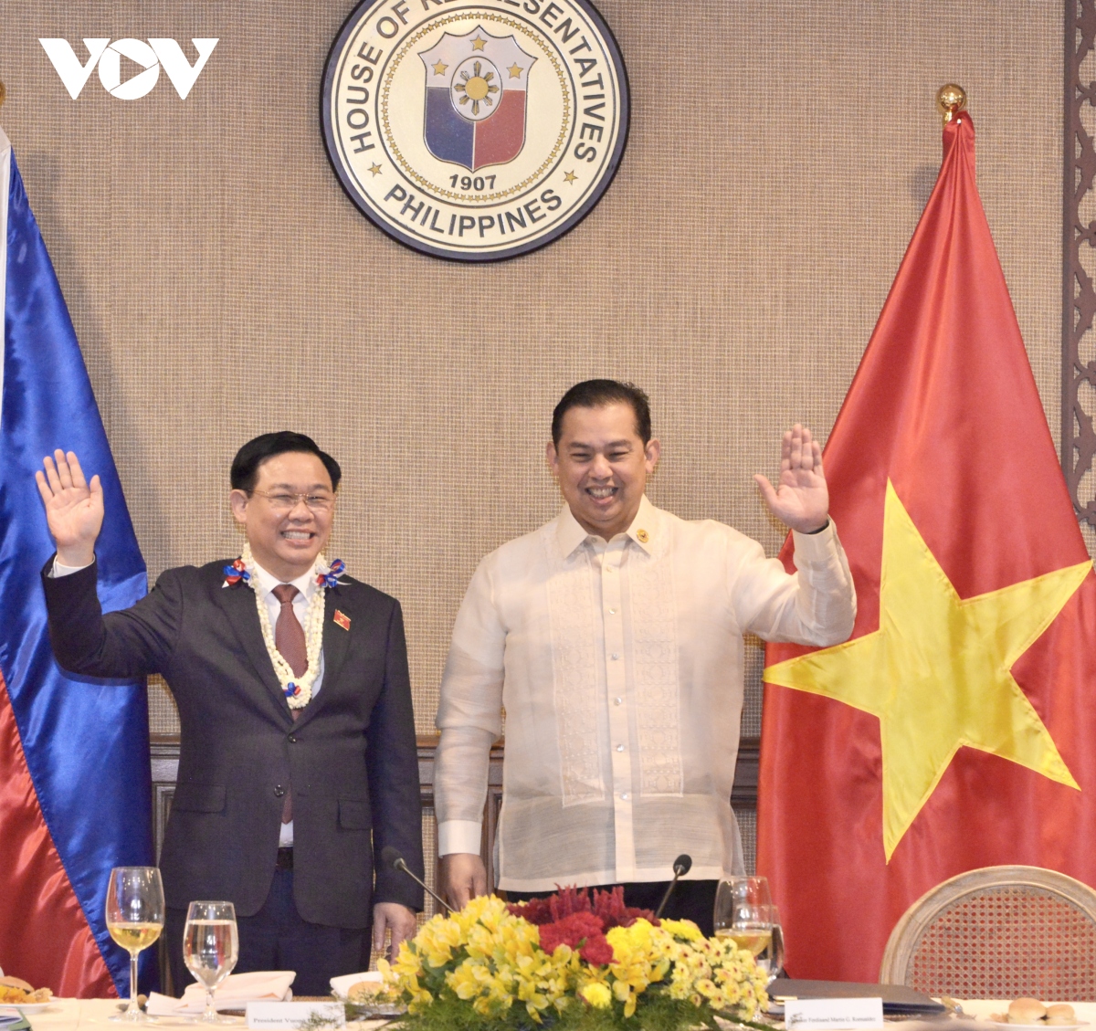 Thay mặt Đoàn đại biểu cấp cao Quốc hội Việt Nam, Chủ tịch Quốc hội Vương Đình Huệ bày tỏ vui mừng lần đầu tiên đến thăm đất nước Philippines tươi đẹp và giàu lòng mến khách; chúc mừng Philippines đã tổ chức thành công Tổng tuyển cử ngày 9/5/2022 và cá nhân ông Martin Romualdez được bầu làm Chủ tịch Hạ viện Philippines; tin tưởng Nghị quyết về việc tăng cường hợp tác song phương thông qua Hội nghị sỹ hữu nghị Philippines - Việt Nam của Hạ viện Philippines sẽ là một dấu mốc quan trọng tăng cường hơn nữa quan hệ giữa các cơ quan lập pháp của hai nước nói riêng cũng như mối quan hệ Đối tác chiến lược giữa hai nước nói chung.