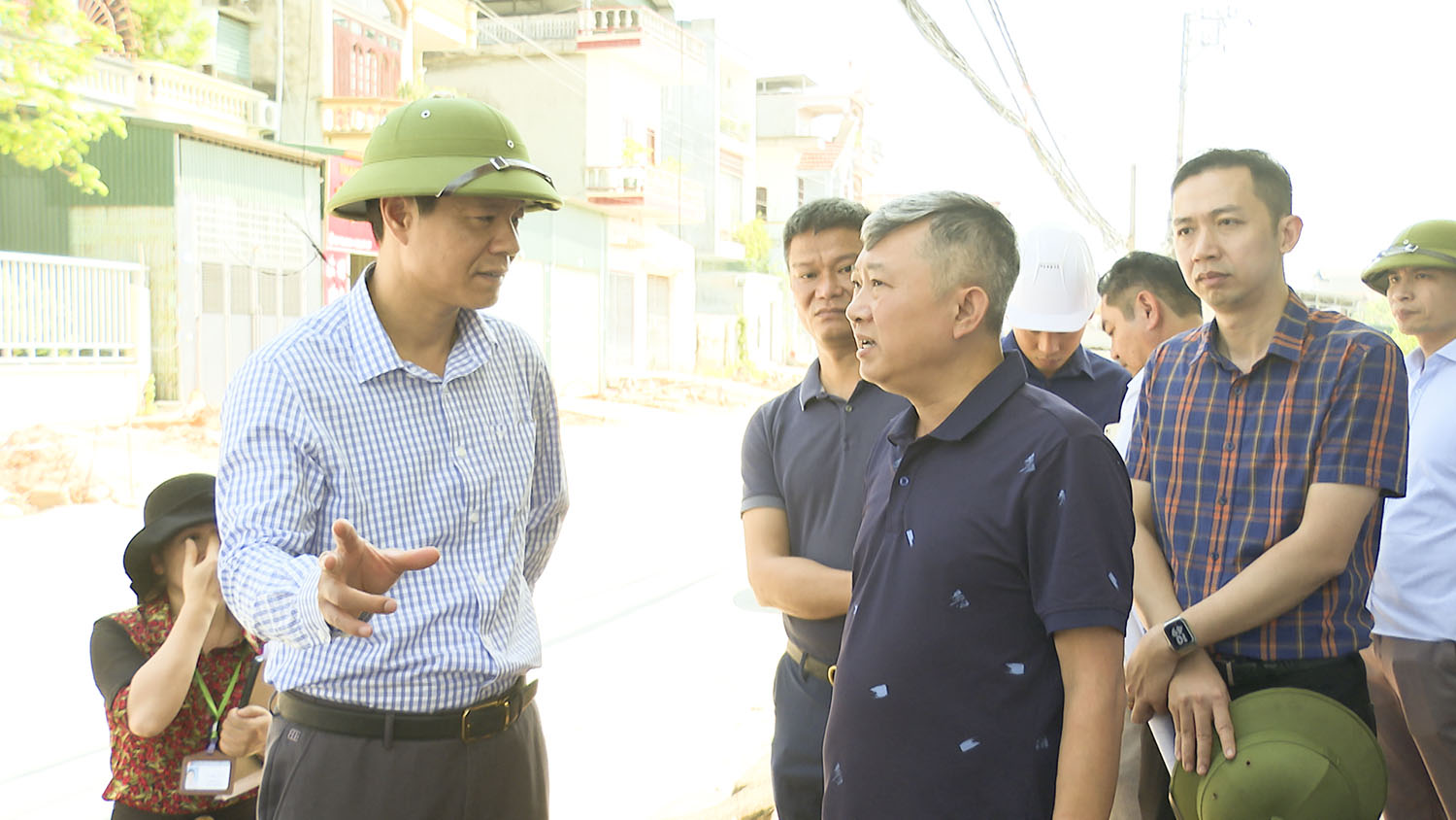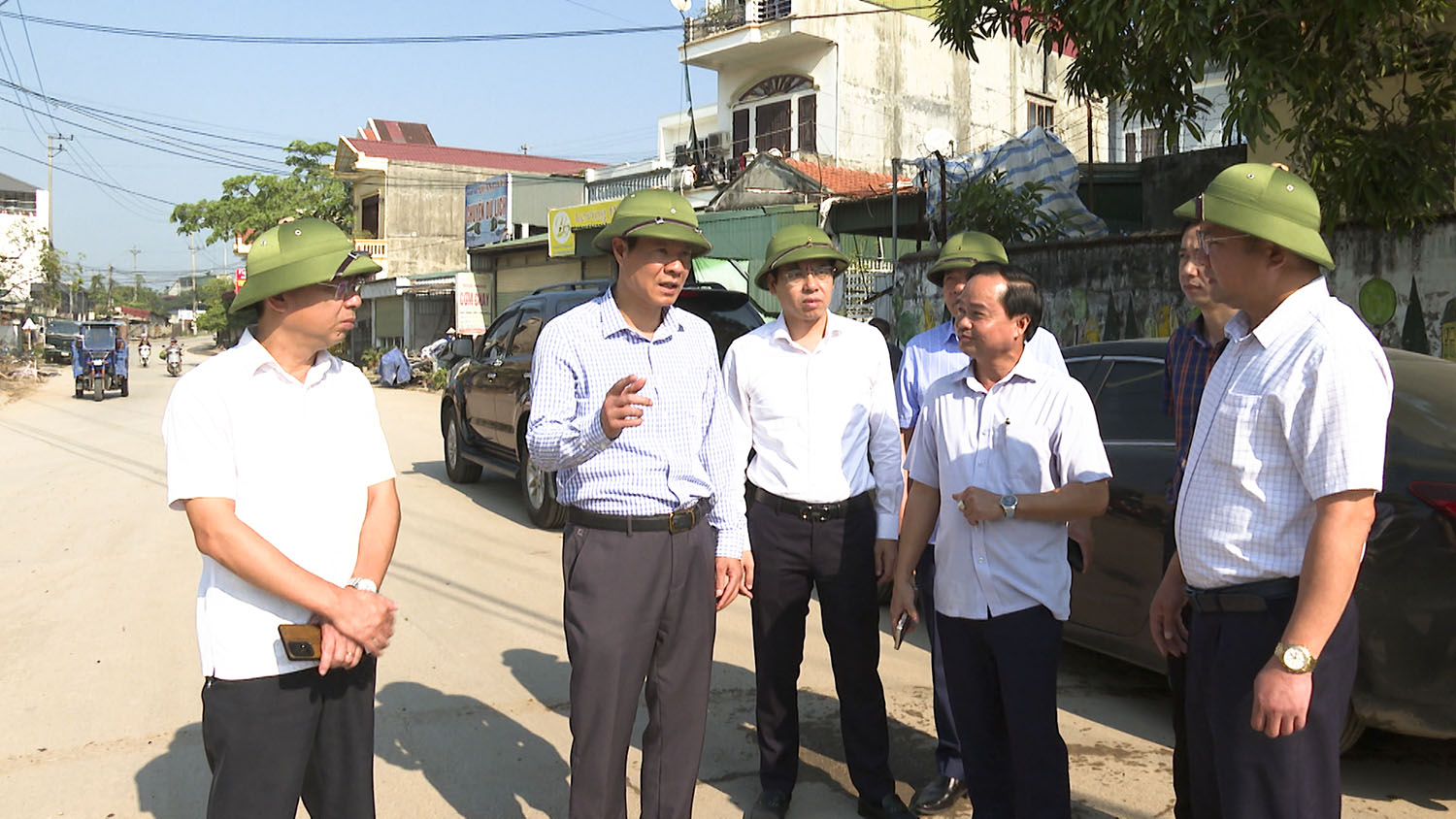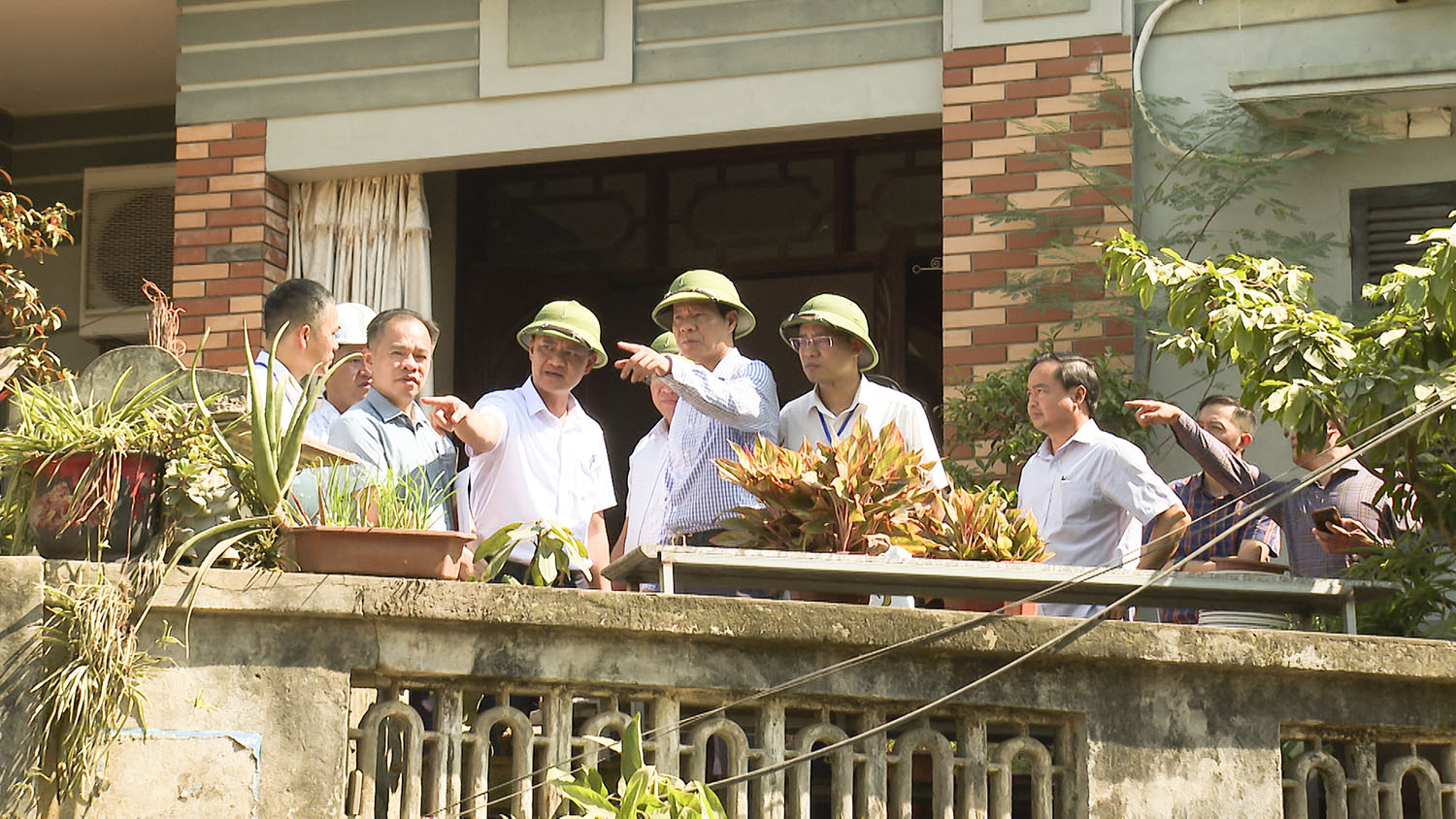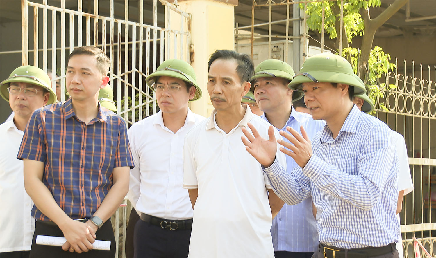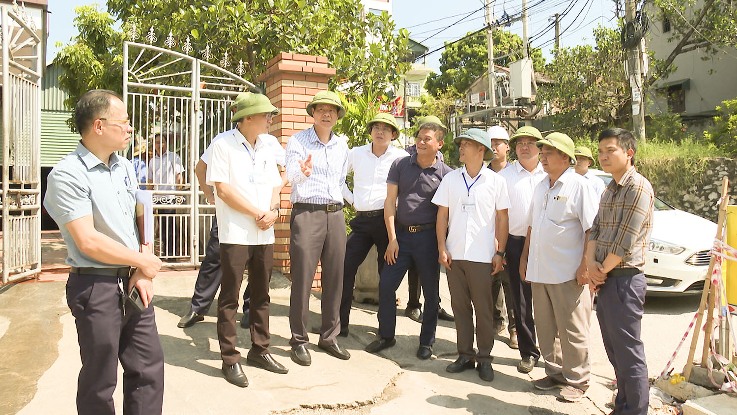 Đồng chí Phạm Tuấn Đạt, Chủ tịch UBND thành phố cùng các đồng chí trong đoàn kiểm tra tại hiện trường.