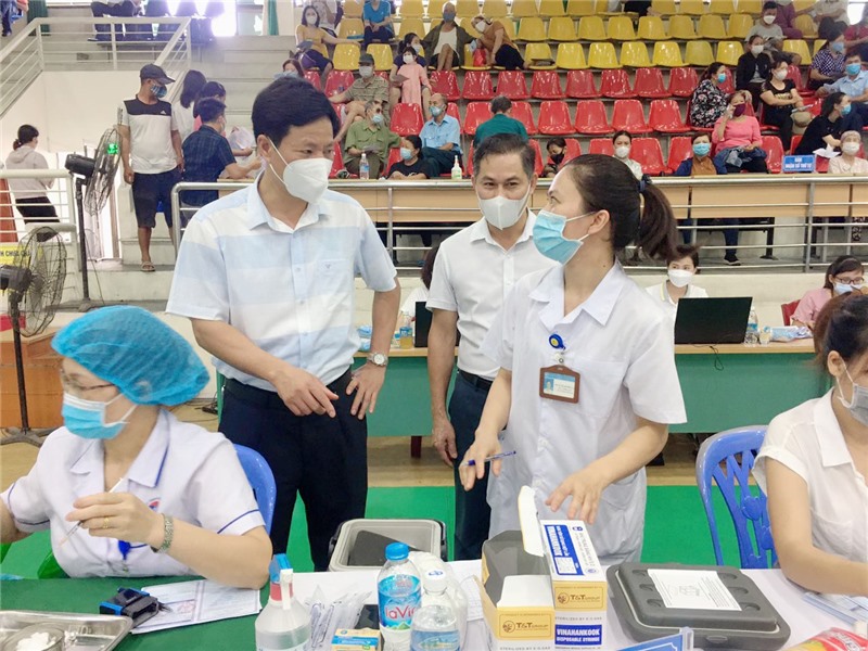 Chủ tịch UBND thành phố Phạm Tuấn Đạt kiểm tra công tác tiêm vắc-xin phòng Covid-19 mũi 2