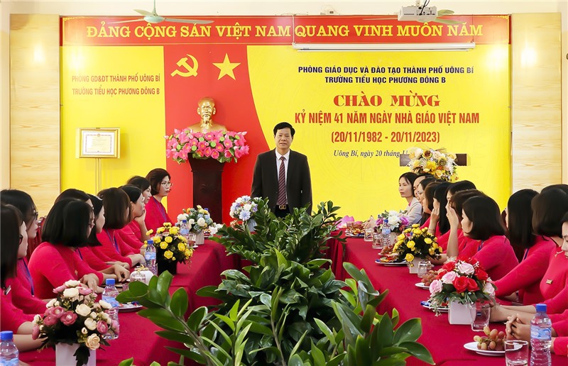 Đến thăm Trường Tiểu học Phương Đông B, thay mặt lãnh đạo thành phố, Chủ tịch UBND thành phố Phạm Tuấn Đạt đã gửi lời chúc mừng đến các thầy giáo, cô giáo; đồng thời cho biết những năm qua, lãnh đạo thành phố dành nhiều nguồn lực đầu tư, phát triển giáo dục, tạo mọi điều kiện thuận lợi trong công tác giảng dạy và học tập. Đồng chí cũng đề nghị thời gian tới, cán bộ, giáo viên nhà trường luôn giữ vững tinh thần trách nhiệm, đoàn kết phát huy kết quả đạt được để truyền đạt kiến thức, dìu dắt học sinh vượt khó, hoàn thành các nhiệm vụ được giao, có nhiều sáng kiến, sáng tạo mới để nâng cao chất lượng giáo dục.