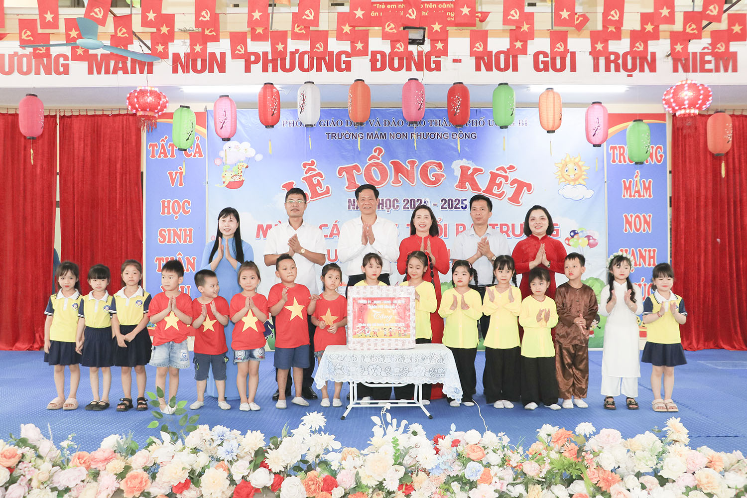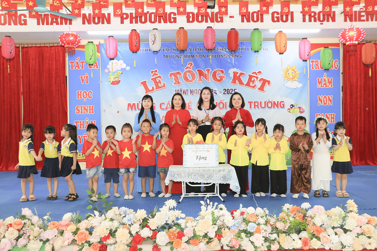 Đồng chí cũng bày tỏ mong muốn tập thể cán bộ, giáo viên Trường Mầm non Phương Đông sẽ tiếp tục nâng cao chất lượng giáo dục, tận tâm chăm sóc, nuôi dạy trẻ để các cháu được học tập, vui chơi và phát triển toàn diện về đức - trí - thể - mĩ, rèn luyện kỹ năng sống; đồng thời, đề nghị cấp ủy, chính quyền phường Phương Đông tiếp tục quan tâm, chung tay với gia đình chăm lo cho trẻ em trên địa bàn bằng những việc làm cụ thể, thiết thực. Đặc biệt, cần đảm bảo an toàn tuyệt đối cho các cháu trong 3 tháng hè khi được bàn giao về gia đình và địa phương, tổ chức một mùa hè vui tươi, an toàn, lành mạnh và bổ ích, phấn đấu không để xảy ra các vụ việc tai nạn thương tích, đuối nước đáng tiếc.