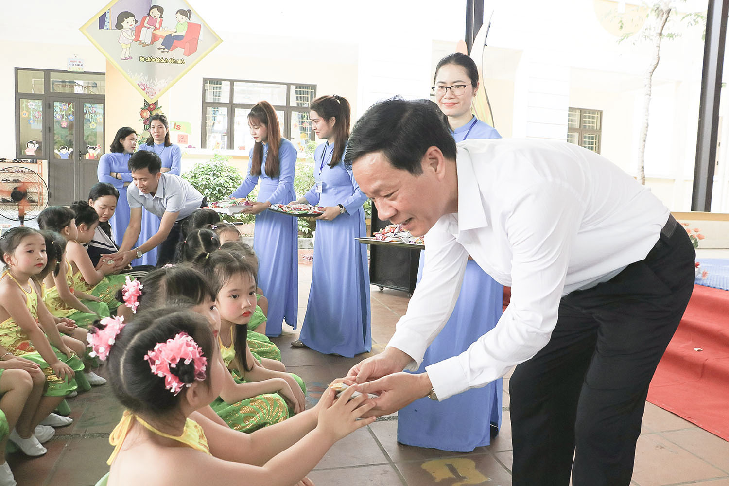 Chủ tịch UBND thành phố tặng quà các cháu thiếu nhi Trường Mầm non Phương Đông nhân dịp Tết Thiếu nhi 1/6