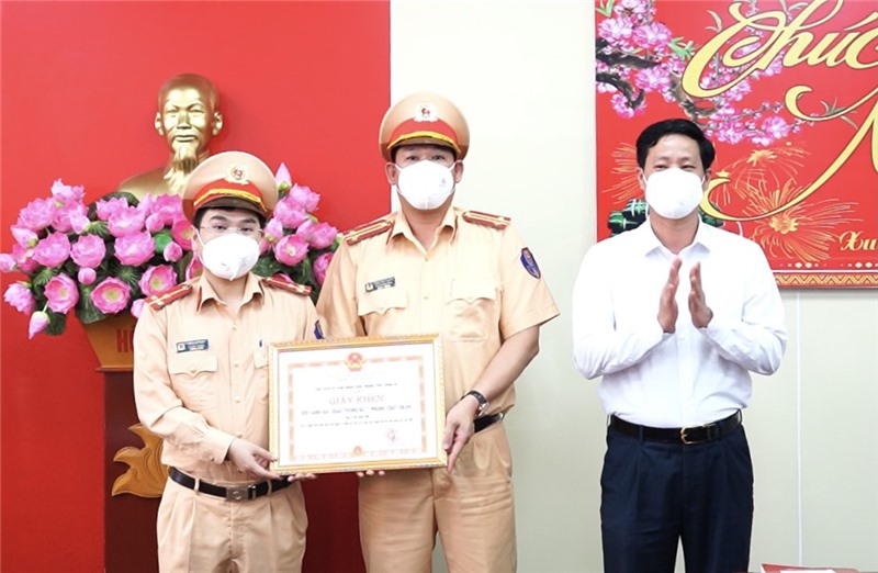 Để ghi nhận sự đóng góp của Đội cảnh sát giao thông số 1, Phòng Cảnh sát giao thông đường bộ - đường sắt, Công an tỉnh Quảng Ninh trong thực hiện nhiệm vụ phòng, chống dịch bệnh Covid - 19 trên địa bàn thành phố năm 2021, chiều ngày 18/3, đồng chí Phạm Tuấn Đạt, Phó Bí thư Thành ủy, Chủ tịch UBND thành phố đã trao giấy khen cho tập thể đội và 12 cá nhân có thành tích xuất sắc.