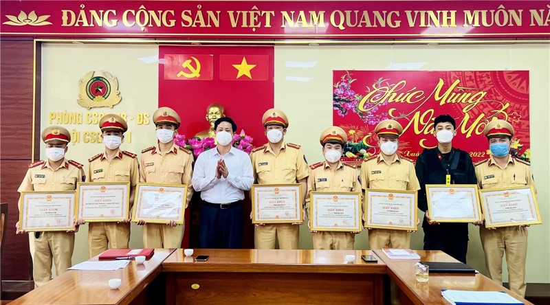 Chủ tịch UBND thành phố khen thưởng cán bộ, chiến sỹ Đội Cảnh sát giao thông số 1 vì có thành tích xuất sắc trong công tác phòng, chống dịch Covid-19 năm 2021.