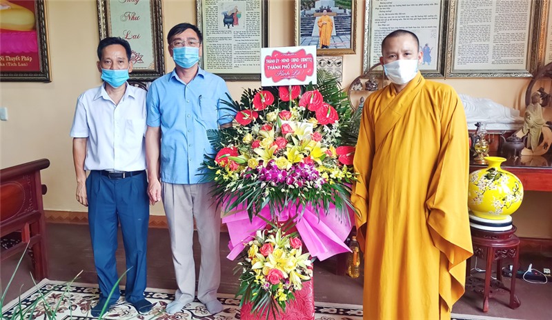 Thay mặt lãnh đạo thành phố, đồng chí Trưởng Ban Dân vận Thành ủy, Chủ tịch UBMTTQ thành phố Đào Ngọc Sơn thăm hỏi sức khoẻ, tặng quà và chúc mừng các vị chức sắc, tăng ni, phật tử đón mùa Phật đản an vui; mong muốn trong thời gian tới, các vị chức sắc, tăng ni cùng phật tử tiếp tục nêu cao tinh thần đại đoàn kết dân tộc, sống tốt đời đẹp đạo, chấp hành tốt đường lối, chủ trương của Đảng, chính sách, pháp luật của Nhà nước, cùng với chính quyền các cấp thực hiện tốt các chính sách an sinh xã hội, chung sức đồng lòng cùng cả hệ thống chính trị khống chế và đẩy lùi dịch Covid-19, bảo vệ sức khỏe nhân dân.