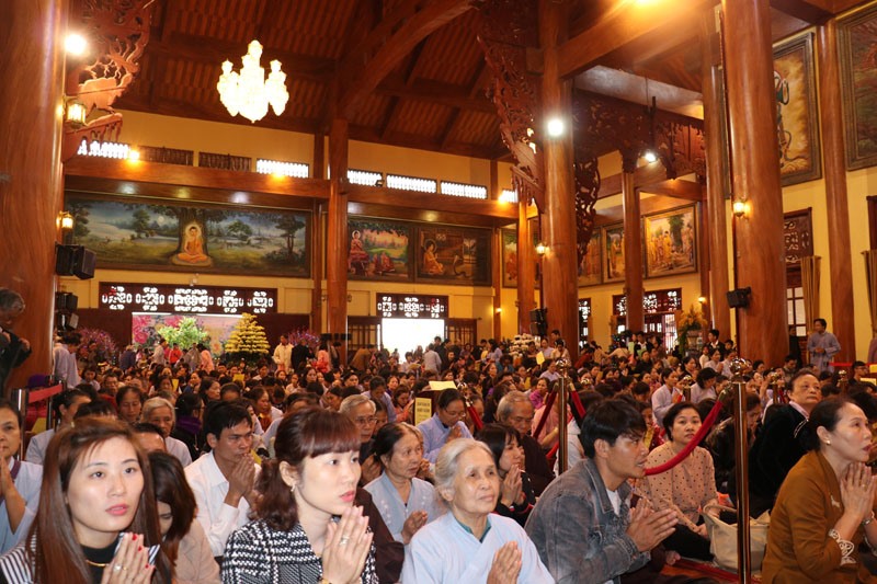 Tại chính điện chùa, dù đông đúc, song mọi người đều hành lễ trong trật tự.