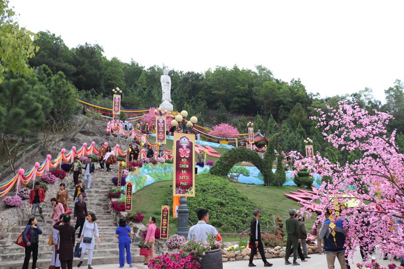 Ngay trong ngày khai hội xuân Kỷ Hợi 2019, hàng ngàn người dân, du khách, Phật tử đã về tham quan, lễ Phật và vãn cảnh tại ngôi chùa trên núi có chính điện lớn nhất Đông Dương này.