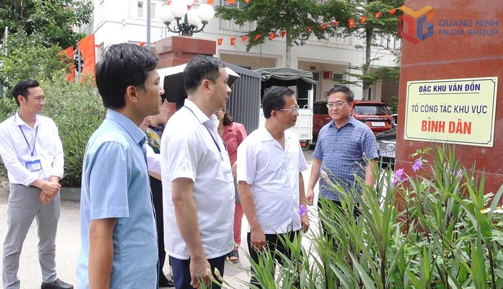 Đồng chí Cao Tường Huy, Phó Chủ tịch UBND tỉnh kiểm tra cơ sở vật chất tại Tổ công tác khu vực Bình Dân (đặc khu Vân Đồn).